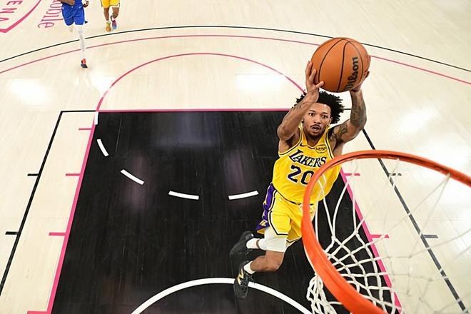 本场比赛中,湖人的替补后场新援小尼克-史密斯(Nick Smith Jr.)的表现令人大跌眼镜。史密斯全场出场24分33秒,投篮10中3,三分线外6中2,仅得到了8分4篮板2助攻1盖帽的数据,还有3次失误和2次犯规,正负值也是低到了-23。史密斯在进攻端的手感并不理想,他的出手次数并不少,但是他的投篮选择依然存在着不小的问题,他也缺乏稳定的进攻手段,而且他在传球和组织方面的能力也是非常有限的。不仅如此,史密斯在防守端的表现也是非常一般的水平,他也同样没有办法在防守端发挥出更大的作用。当然了,史密斯的出场时间基本上都是与球队第二阵容球员重合的,而他的这些队友们中可能有些人都不会出现在新赛季的NBA赛场上,史密斯在这种情况下也是不得不承担起更多的责任,这也是他效率低下且表现不佳的原因之一。