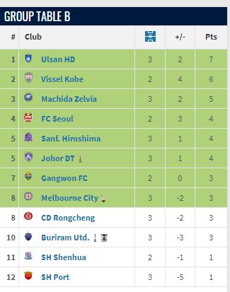 分别在主场负于柔佛新山、町田泽维亚之后,成都蓉城跌出晋级区,而上海申花、上海海港更是分别排名最后两位。
